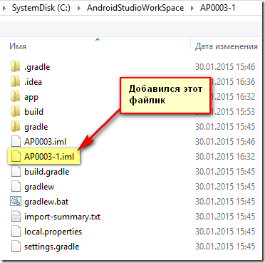 Теперь закрываем Android Studio и переименовываем каталог C:\AndroidStudioWorkSpace\AP0003