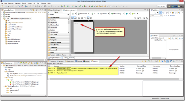 Но в результате мы получили все обновления включая и commit где мы изменяли strings.xml
